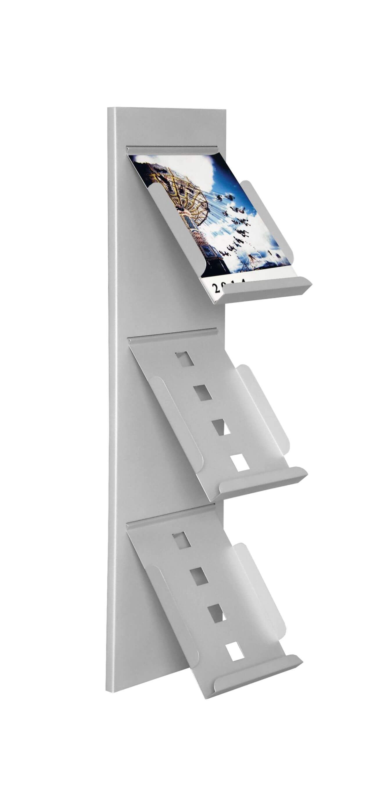 Robuster Metallständer für einseitige Platzierung an einer Wand in silber, schwarz oder weiß, ist geeignet für die Präsentation von Infomaterial.