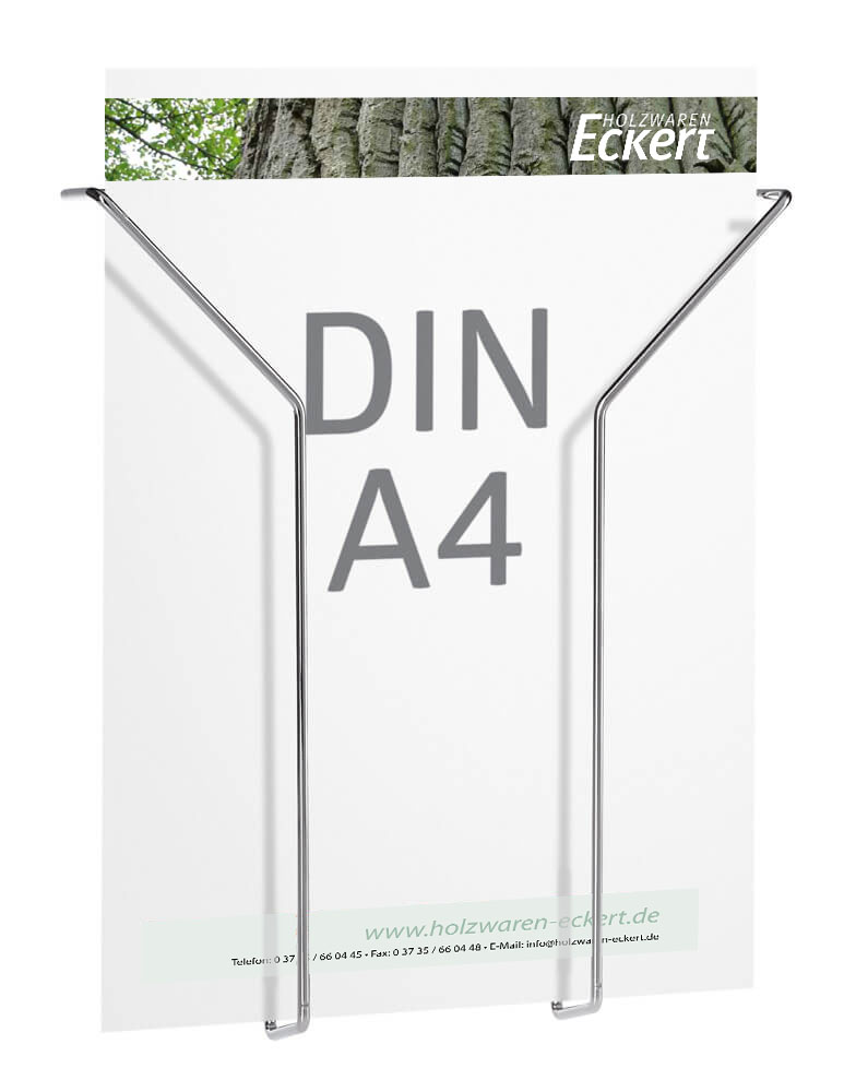 Prospektfach DIN A4 ist für unsere gebogenen Prospektständer gut geeignet.