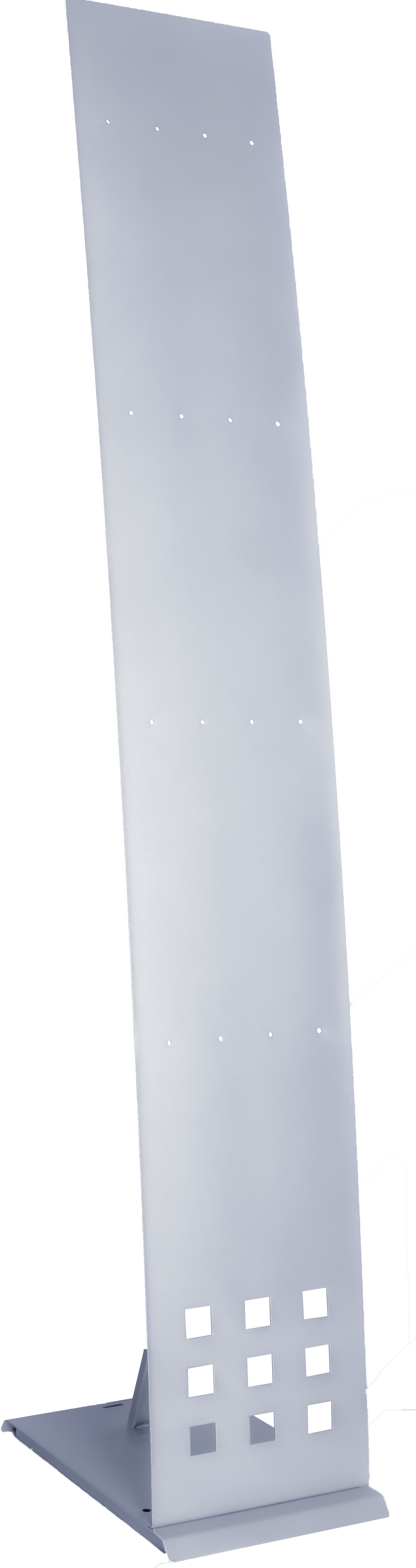 Einseitiger Metallständer in silber, schwarz oder weiß. Einfache und robuste Konstruktion.