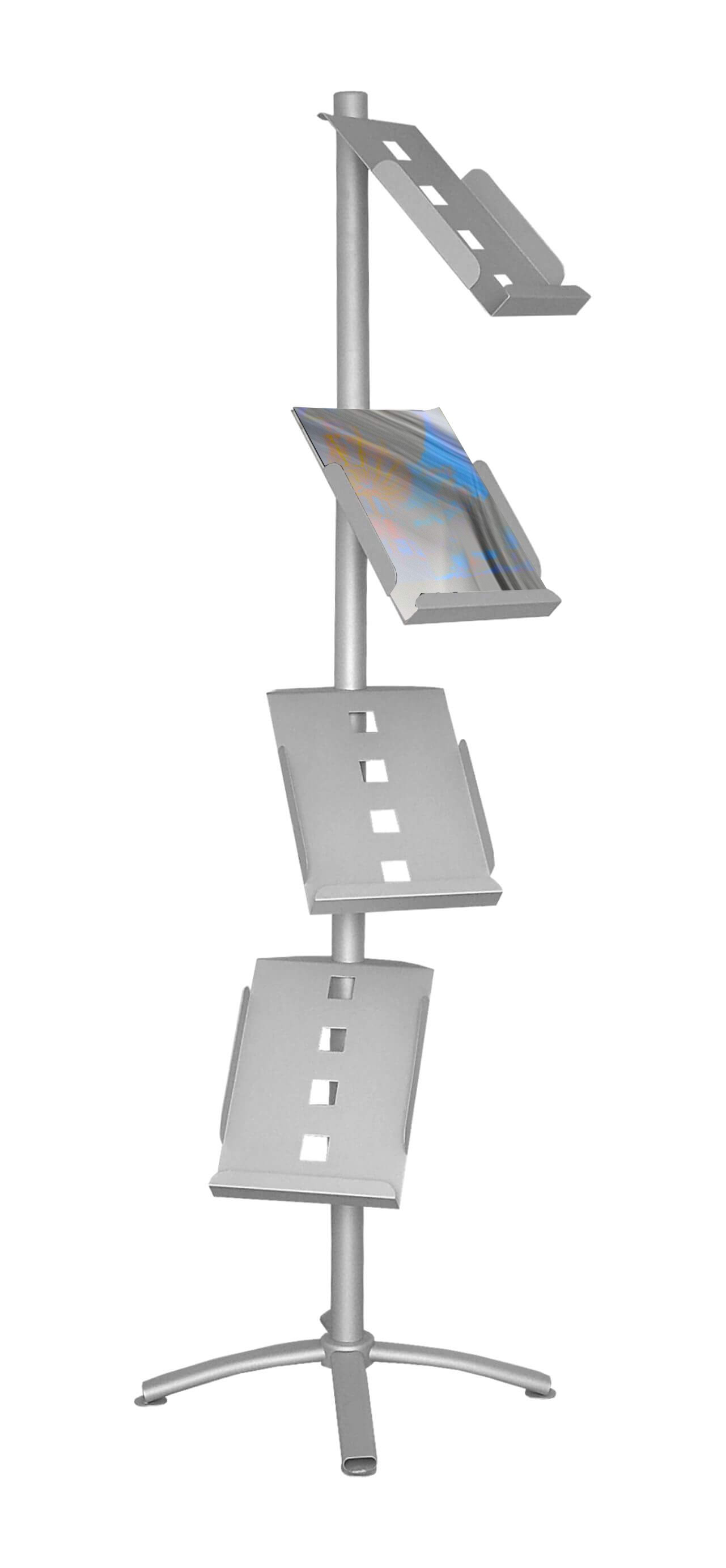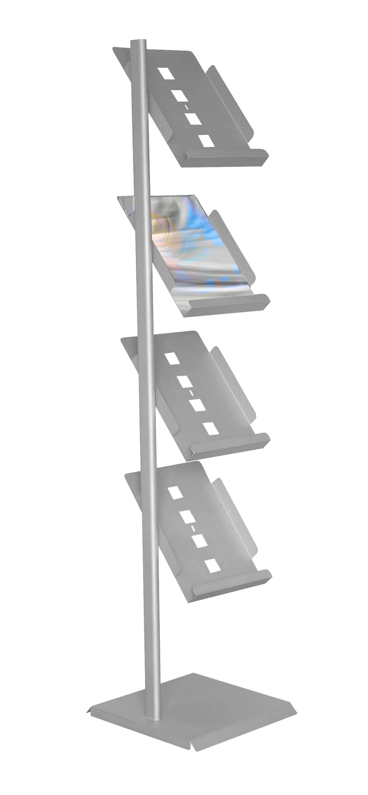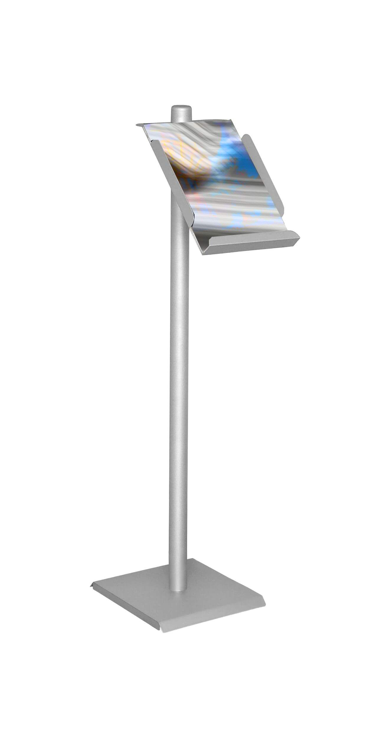 Robuster einseitiger Metallständer in silber, schwarz oder weiß, ist geeignet für die Präsentation von Informationsmaterial. Diese Bauform ist geeignet für geringere Menge von Prospekten